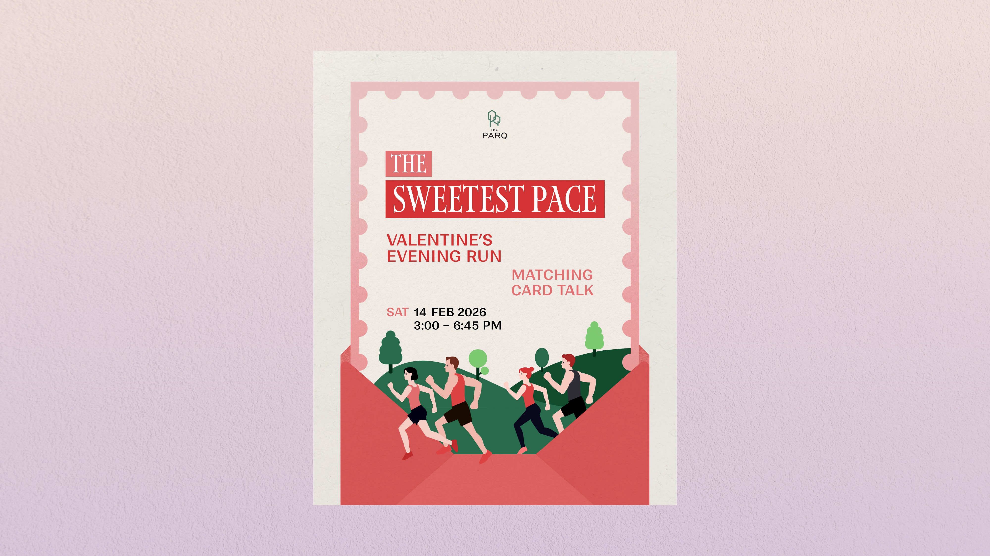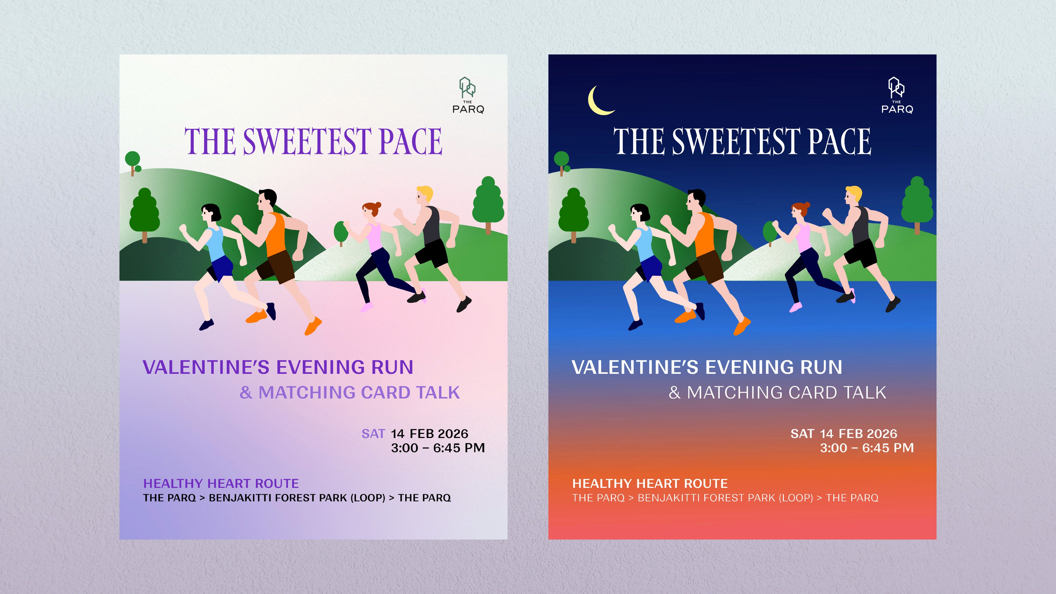The Sweetest Pace is a Valentine’s seasonal campaign designed for singles who want to mingle and meet new people through a meaningful, active experience. The concept combines an evening wellness run with a matching card talk activity, connecting the spirit of Valentine’s Day with the 2026 marketing trend of wellness and longevity.